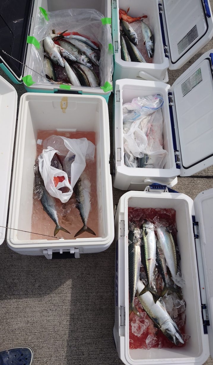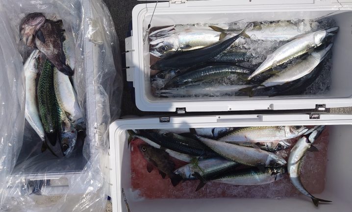 7月23日 歌津沖21.2℃5時~14時間での釣果 サバ 40~45㎝ 船中28匹 マゾイ 24~26㎝ 船中 2匹 メバル 25㎝ 船中 1匹 青物狙いで行って見ましたがフックアウト一回のみでし…
