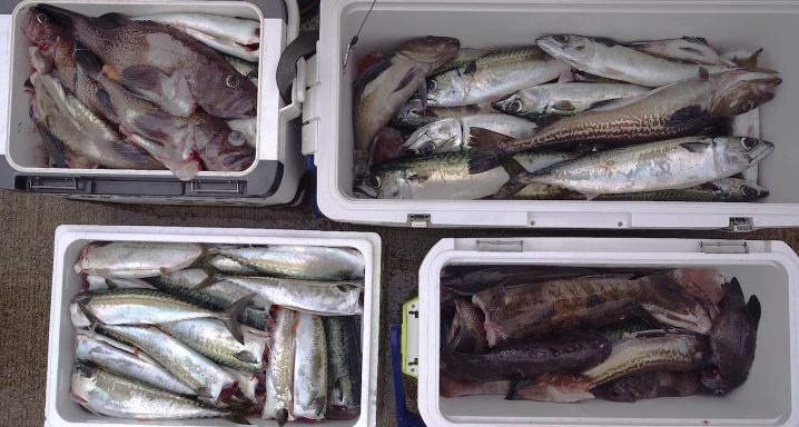 7月2日気仙沼沖19.2~21.3℃ 5時〜14時まで釣果です マゾイ 28~40㎝ 船中23匹 メガラ 27~30㎝ 船中 4匹 サバ 40~42㎝ 船中 4匹 スケソ…