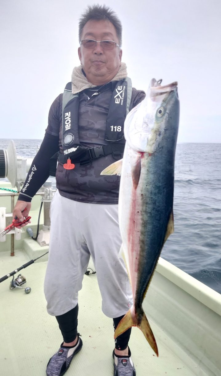 青物やっと出ました!!おめでとうございます。 7月8日 気仙沼沖19.2℃ 6時半〜14時まで釣果です ワラサ 65㎝ 船中 1匹 マゾイ 28~33㎝ 船中11匹 …