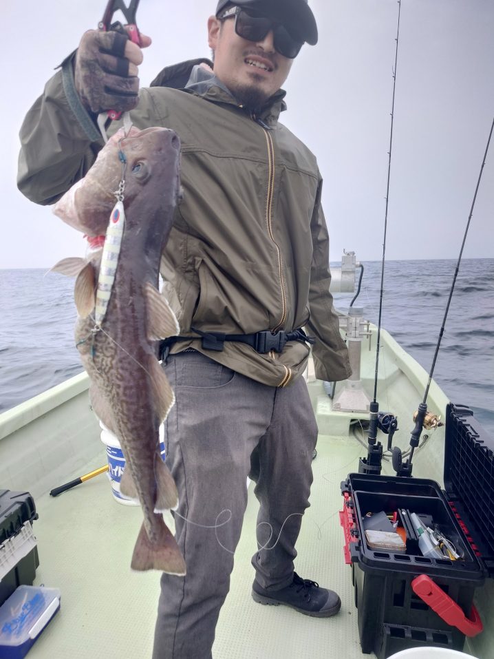 5月 25日 気仙沼沖18.2℃ 5時半〜14時まで釣果です マダラ 61~63㎝ 船中 2匹 スケソウ 43~56㎝ 船中 6匹 マゾイ 28~35㎝ 船中3匹 アイナメ …