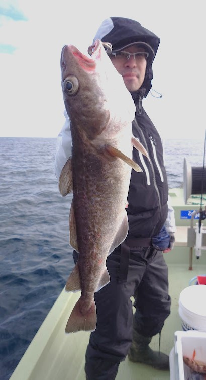 1月9日 気仙沼沖 12.3℃ 6時半〜13時まで釣果で マダラ 60㎝ 船中 1匹 ヤリイカ 胴長27~40㎝ 船中4杯 スケソウ 42~55㎝ 船中13匹 アイナメ 35~43㎝ …