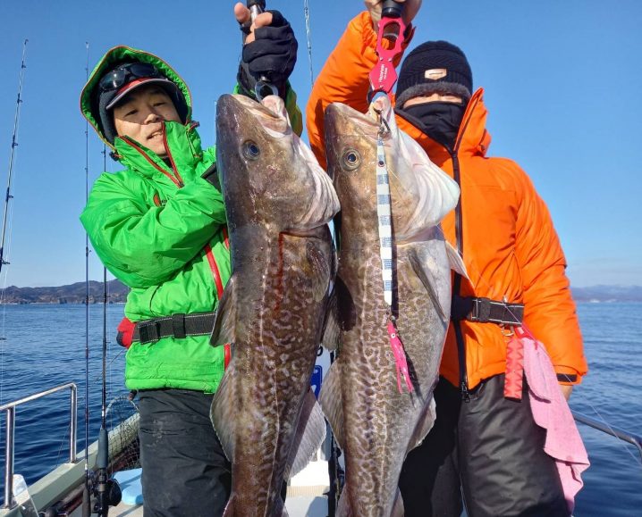 1月8日 気仙沼沖 12.5℃ 6時半〜13時まで釣果で マダラ 64~65㎝ 船中 2匹 アイナメ 35~40㎝ 船中 3匹 マゾイ 28~35㎝ 船中4匹 メガラ 19㎝ 船中 …