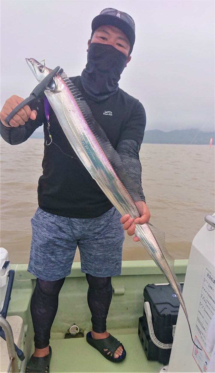 8月28日雨 (広田)~気仙沼沖 6時半~14時までの釣果 タチウオ F3.5~F5 船中26匹 カンパチ小 31~32㎝ 船中2匹 イシナギ 30㎝ 船中1匹 サバ 43㎝ 船中7匹