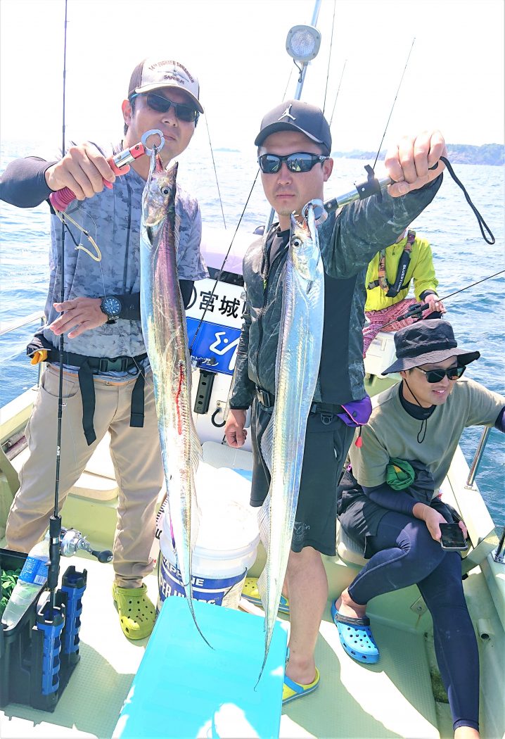 9月19日 気仙沼東口 海水温21.2℃(水色)やや濁り 5半時~14時の釣果 タチウオ F3.5~F4.5 船中 6匹 ペンペン 47~57㎝ 船中2匹 ワラサ 65㎝ 船中 1匹 イナダ 45~6…