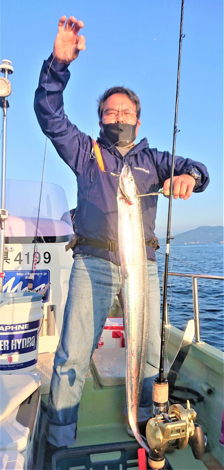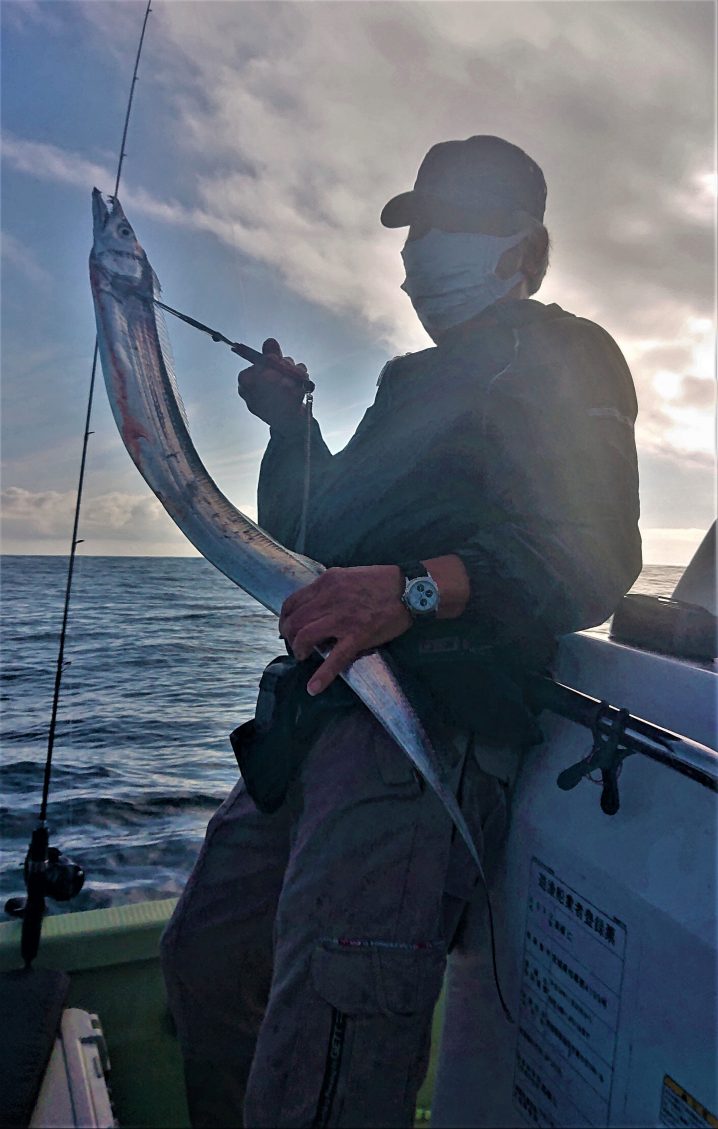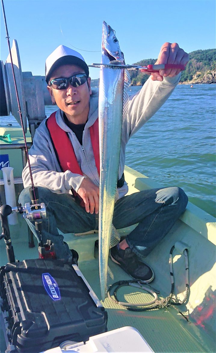 10月3日 気仙沼東口 海水温21.2℃(水色)濁り気味 5時半~14時の釣果 タチウオ F3~F5.5 船中 10匹 皆さま、お疲れ様でした。