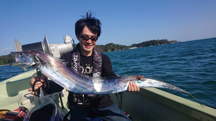 10月2日 気仙沼東口 海水温22.4℃(水色)濁り気味 9時~15時の釣果 タチウオ F6 船中 1匹 その他 フグ ムギサバ 激渋で中でタチウオF6お見事でした。