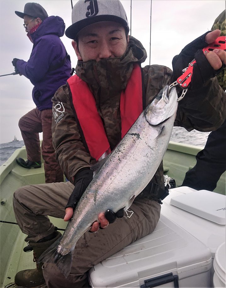 綾里沖 海水温9.8℃やや澄み気味5時~12時まで5人の釣果 サクラマス 40~50㎝1.8㎏ 船中 4匹 マダラ 50~70㎝ 船中 1匹 ホッケ 33㎝ 船中 1匹 マゾイ 28㎝…