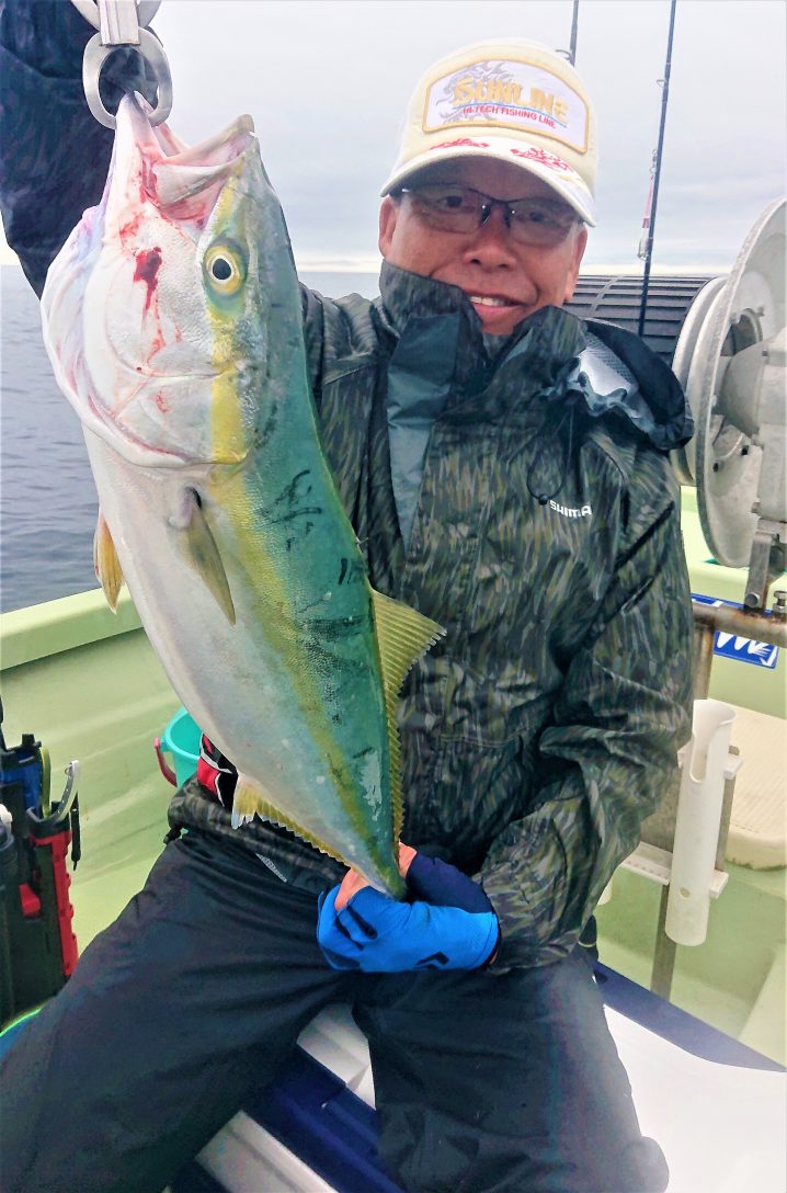 大島沖~唐桑沖 海水温18.3~19.2℃(水色)やや濁り気味 5時~14時まで5人の釣果です。 ワラサ 65~74㎝ 船中2匹 イナダ 43~48㎝ 船中4匹 ヒラメ 36~45㎝ 船中2匹 アイナメ…