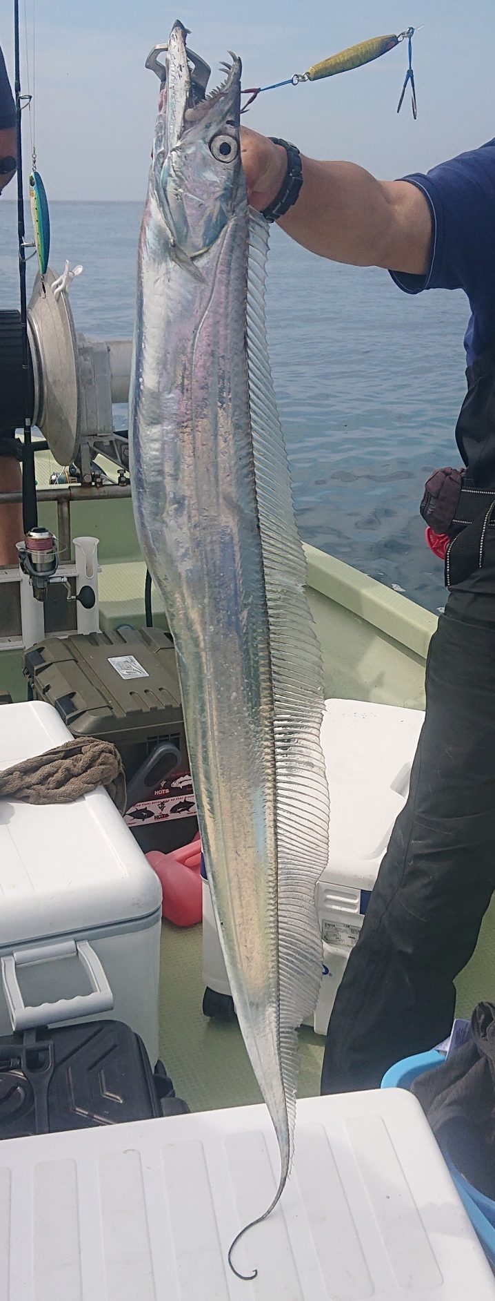大島沖~唐桑沖 海水温19.2~20.3℃(水色)やや澄み気味 5時~14時まで4人の釣果です。 タチウオ 指5本 110㎝ 船中1匹 ワラサ 63㎝ 船中1匹 イナダ 41~54㎝ 船中16匹 …