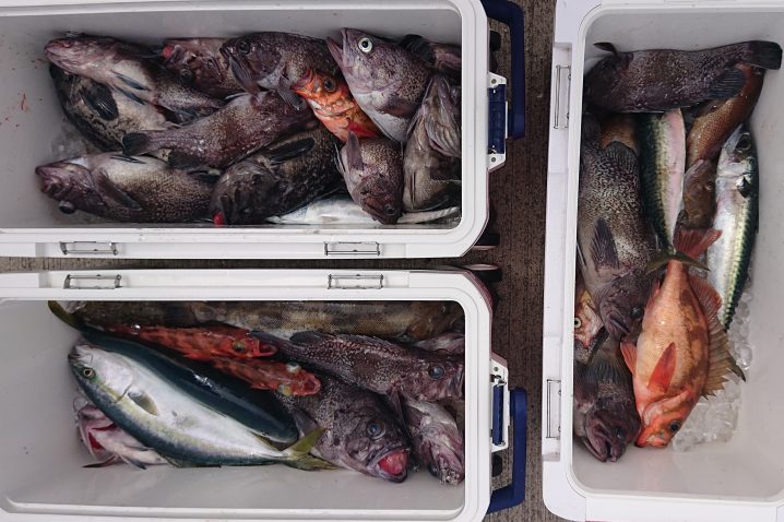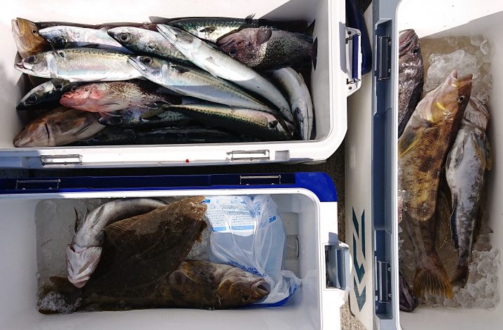 大谷沖~大島沖 海水温16.8~17℃(水色)やや澄み気味 6時~15時まで3人の釣果です。 アイナメ 36~51㎝ 船中14匹(リリース3匹 ヒラメ 45~50㎝ 船中2匹 …